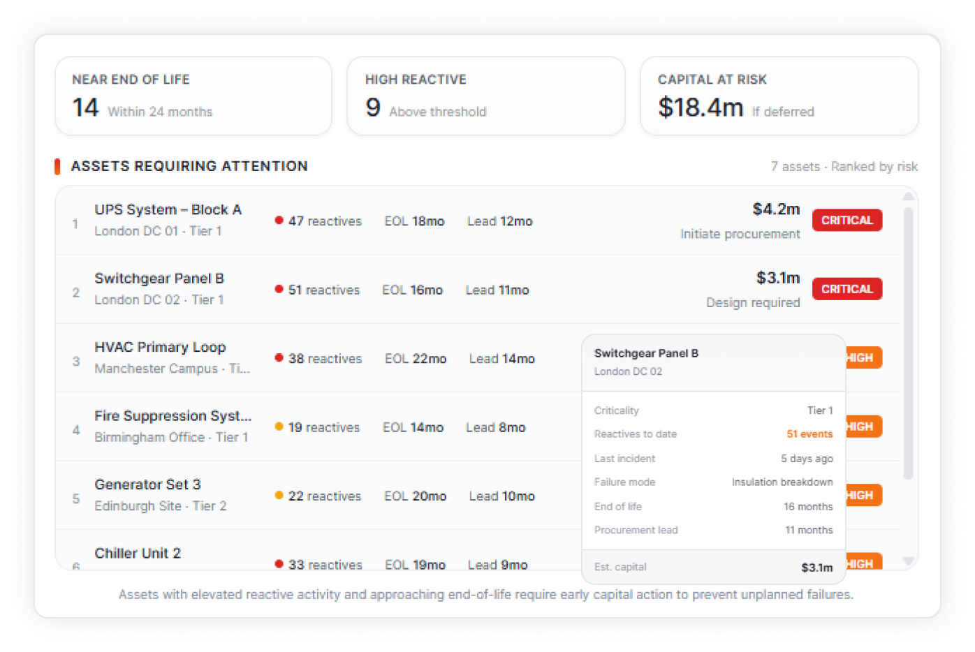Create a single, governed view of capital demand that connects assets, risk, budgets, and operational constraints without manual reconciliation or fragmented tools.